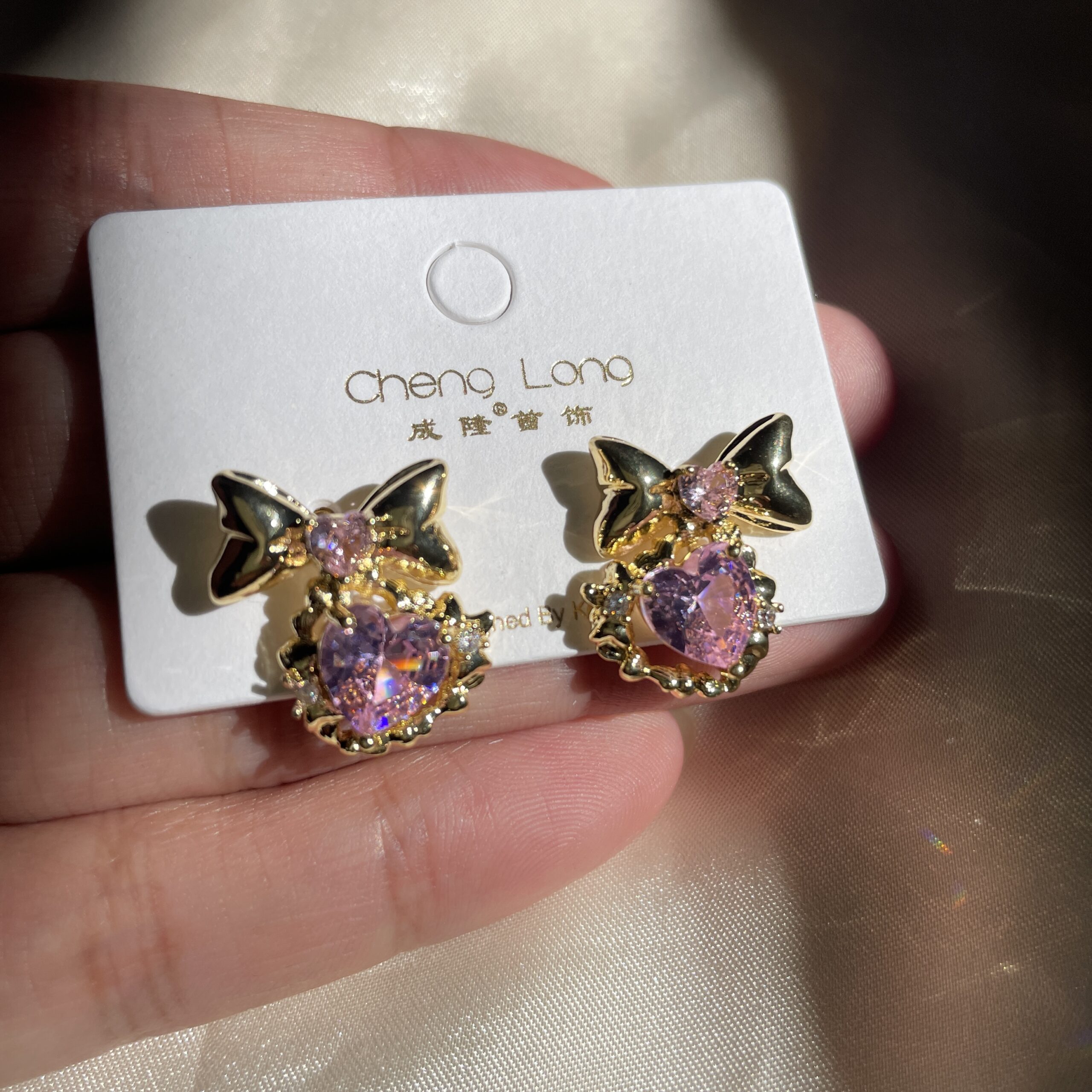 / Bow Pink Stone Earrings