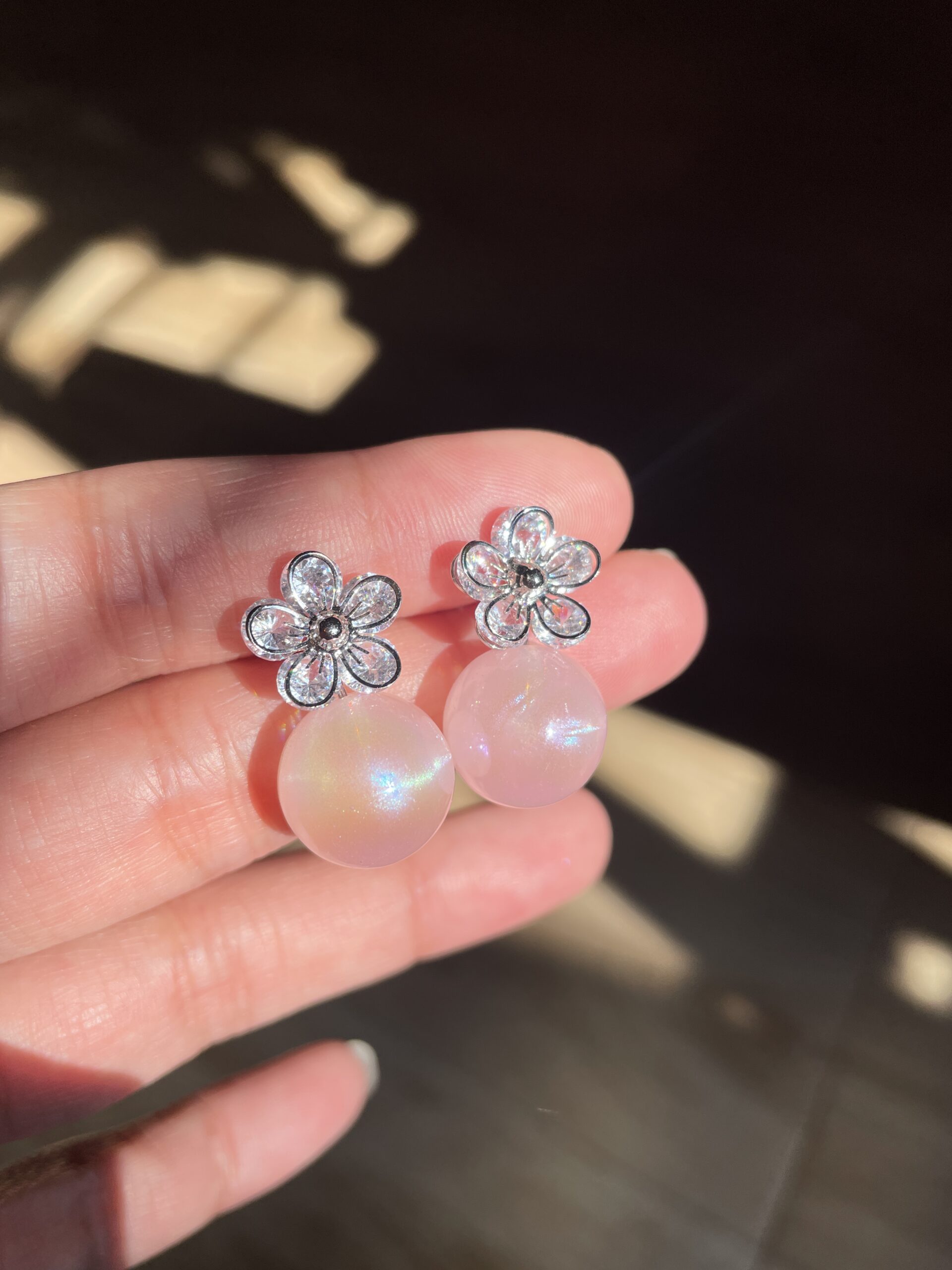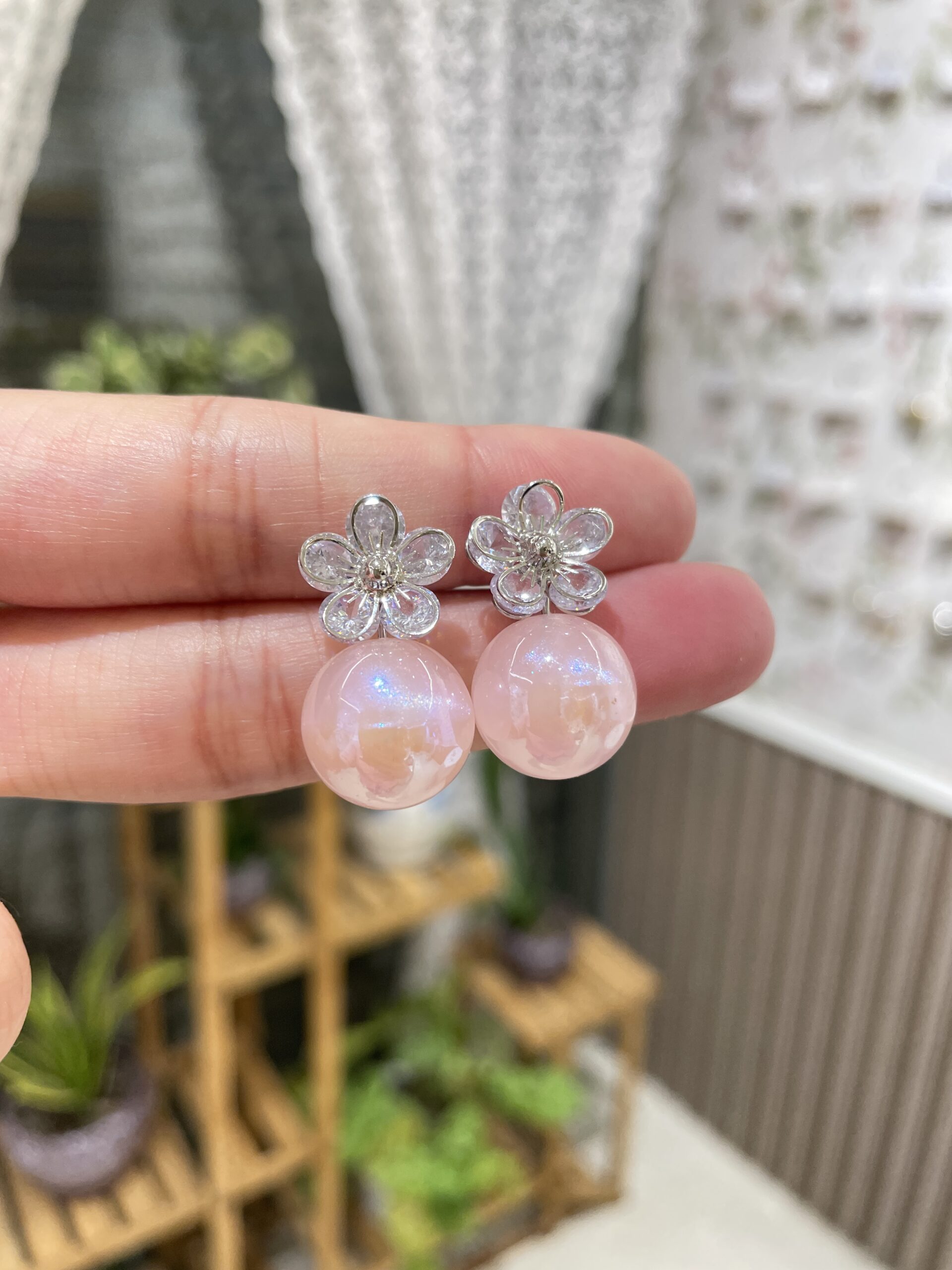 / Clear Flower Pink Shimmer Pearl Earrings