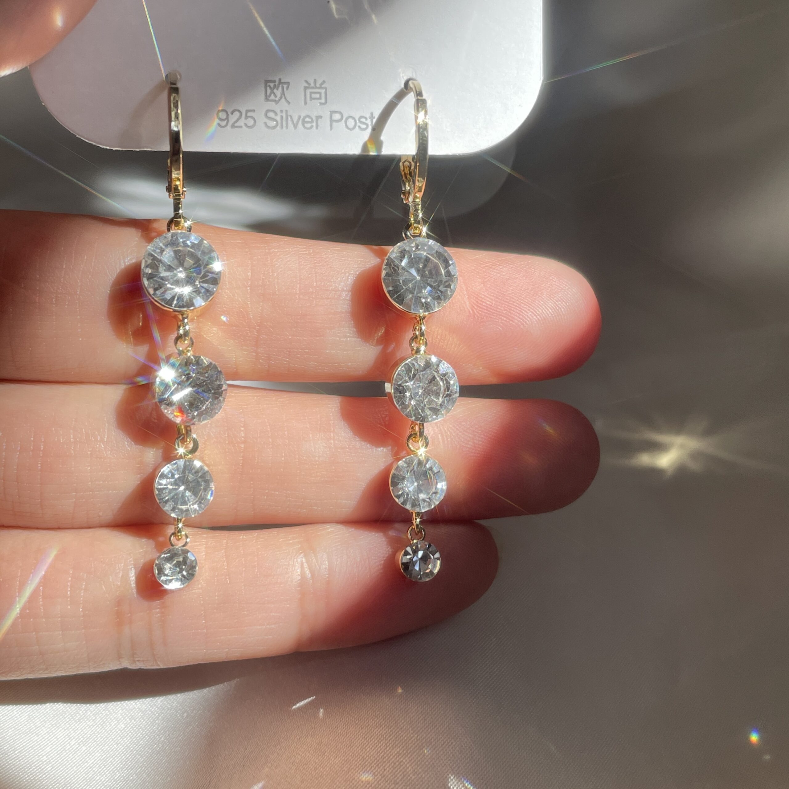 / Full Stone Hanging Hoop Earrings
