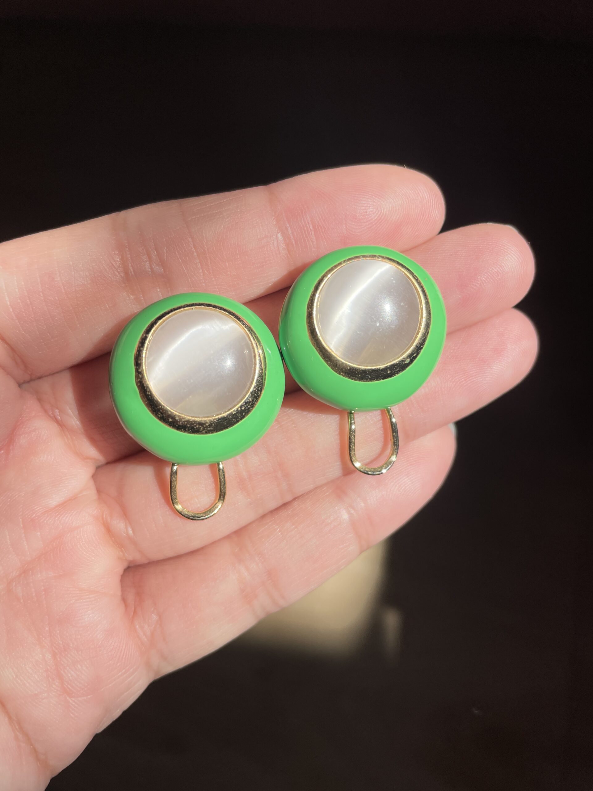 / Green Round Earrings