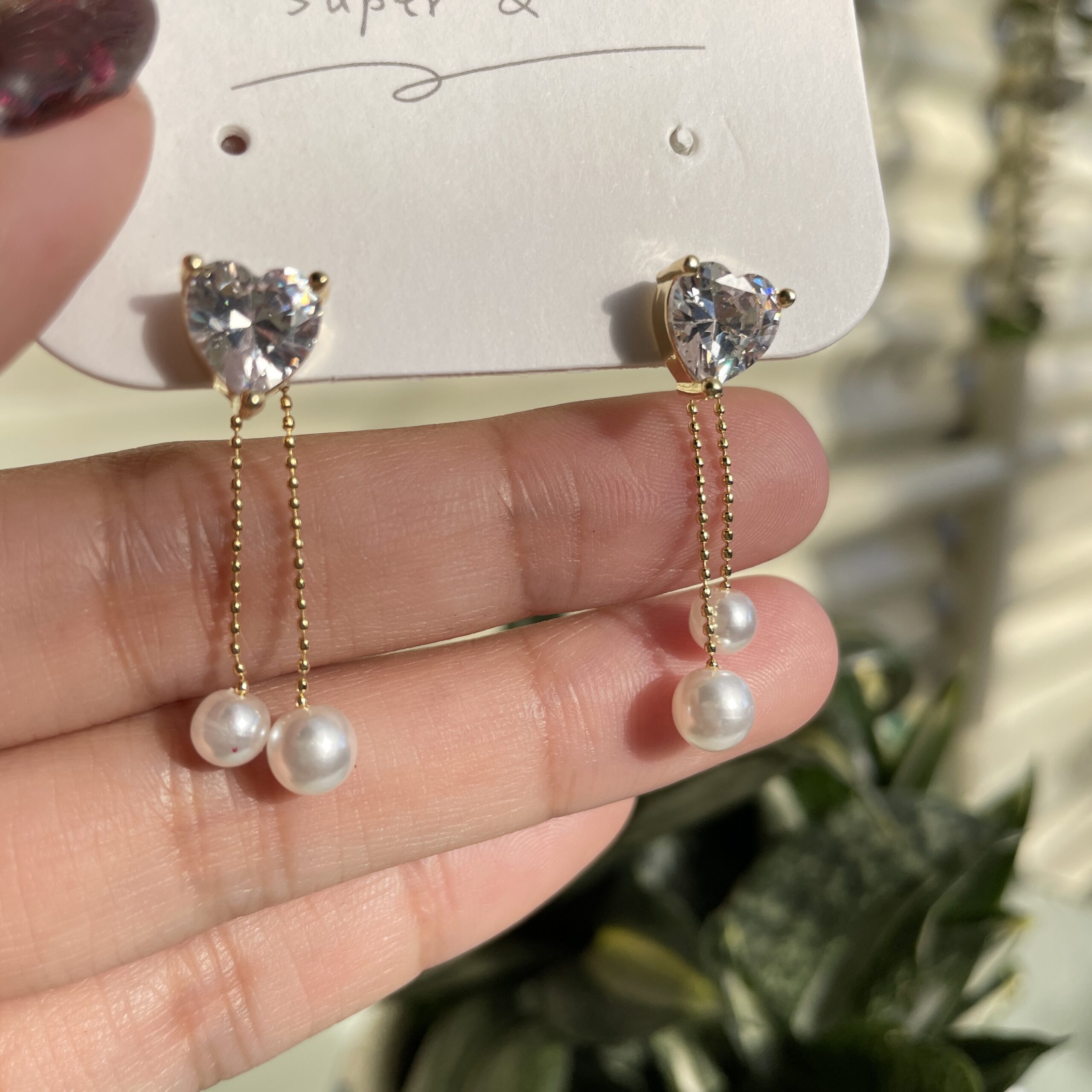 / Heart Hanging Pearl Earrings