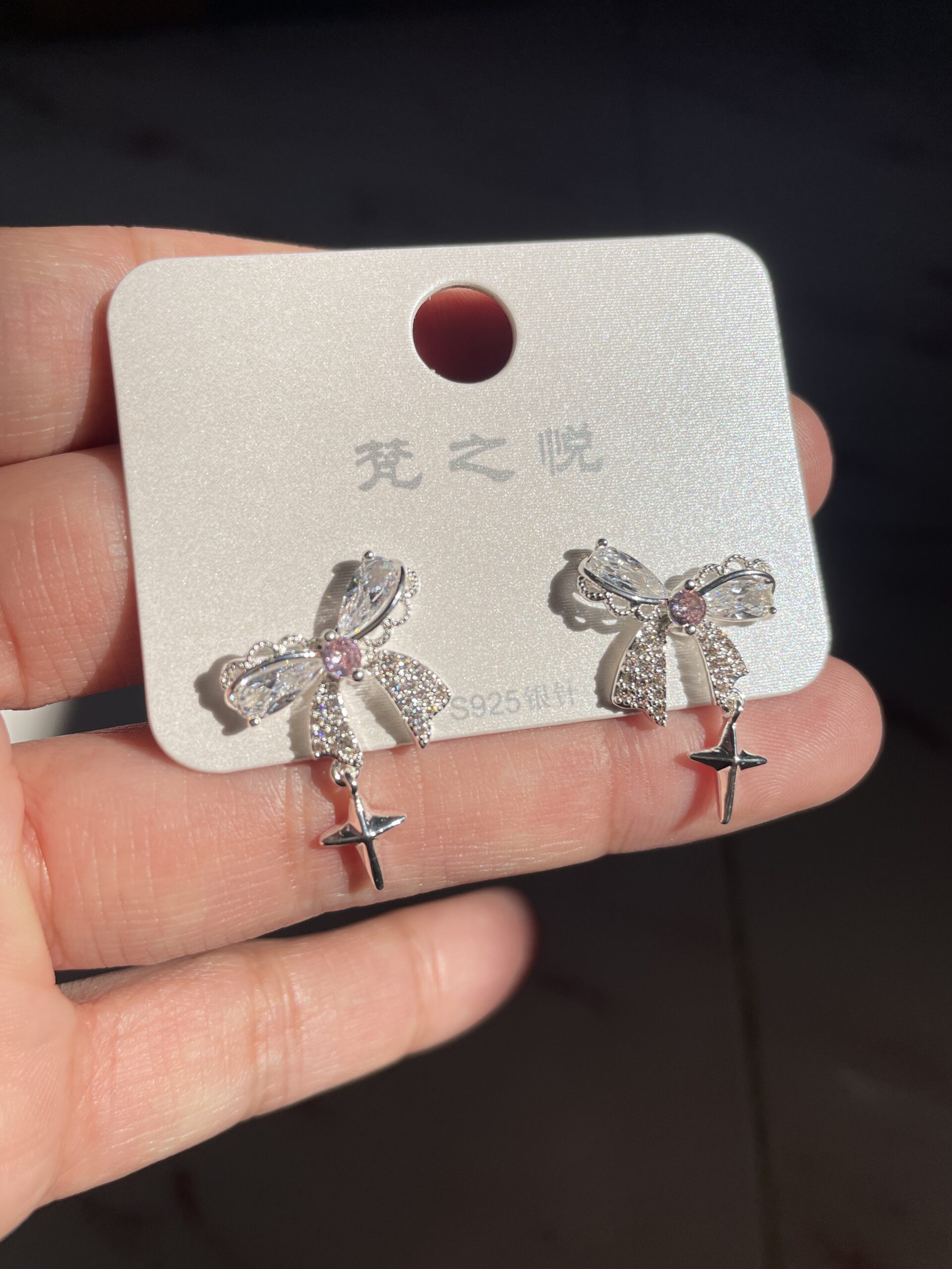 / Pink Stone Bow Earrings
