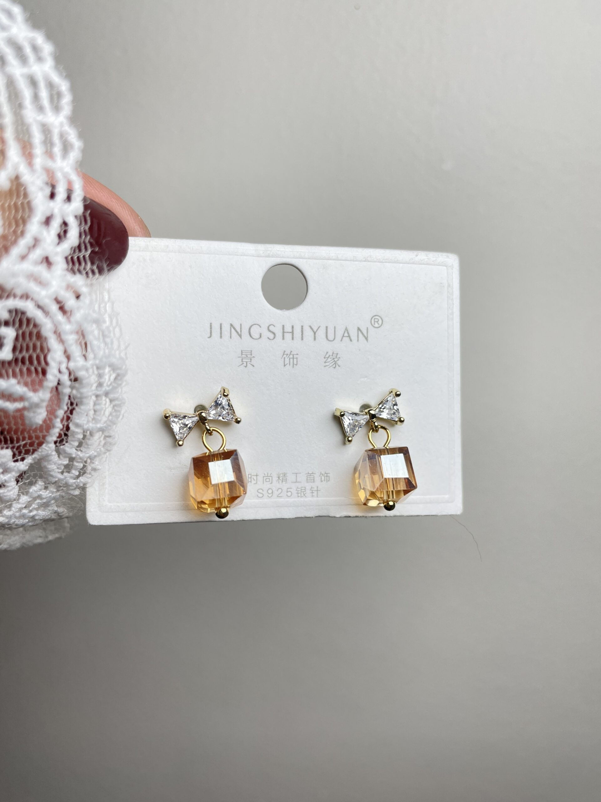 Stone Bow Drop Earrings quantity