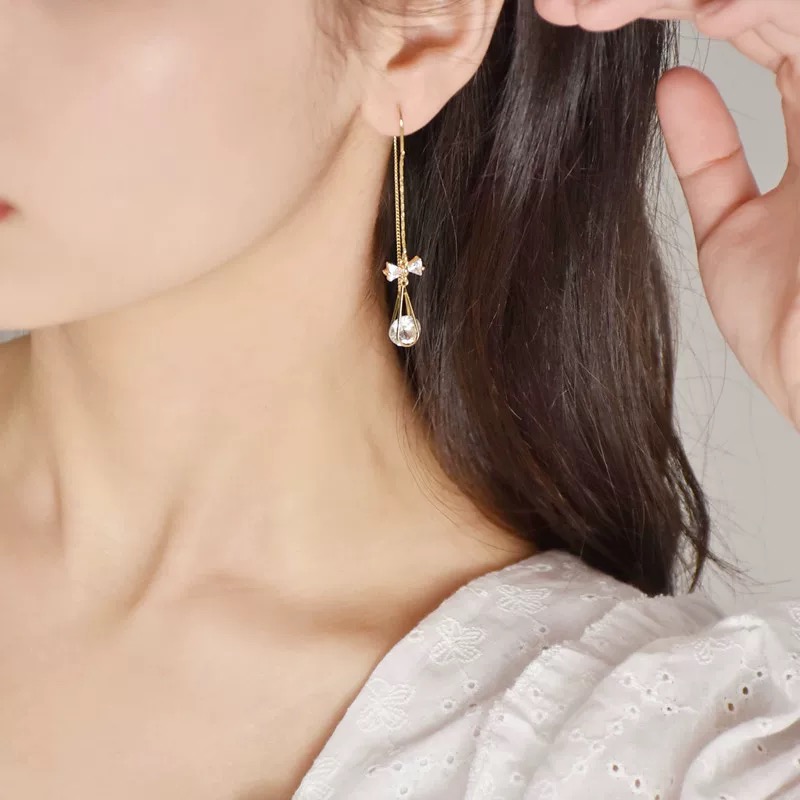 Premium Pearl Full Stone Bow Earrings